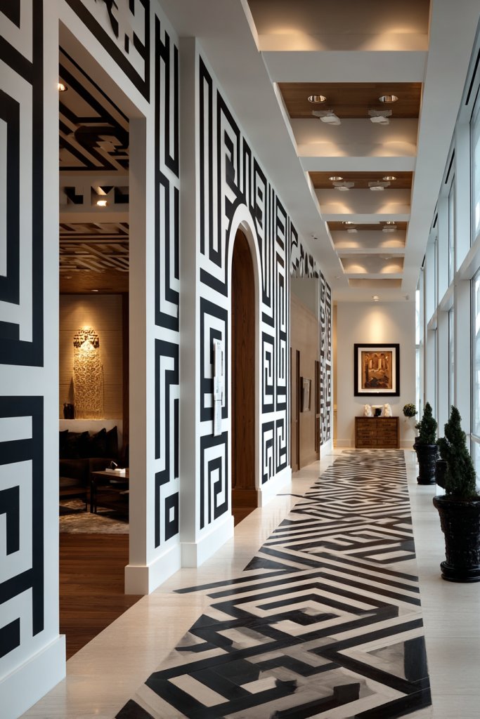 Create custom color combinations or add metallic accents for extra flair. Layer multiple geometric patterns or combine with textured wall finishes for depth. Use your artwork as a backdrop for furniture or decor pieces. It’s a creative way to showcase your artistic side in a modern, understated way.