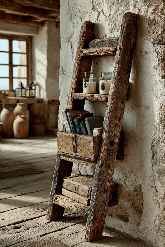 2. Upcycled Vintage Ladders as Unique Shelving Units