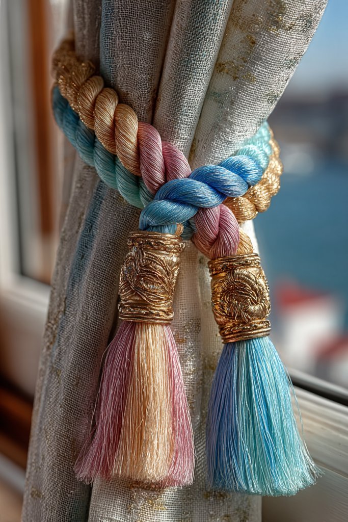 Use different ribbon widths, textures, and colors—satin, grosgrain, or velvet—for varying effects. Braided cords in natural fibers or metallic finishes add a rustic or glam touch. Wrap the ties with beads or charms for extra flair. These DIY ties suit all window types and styles, from traditional to modern.