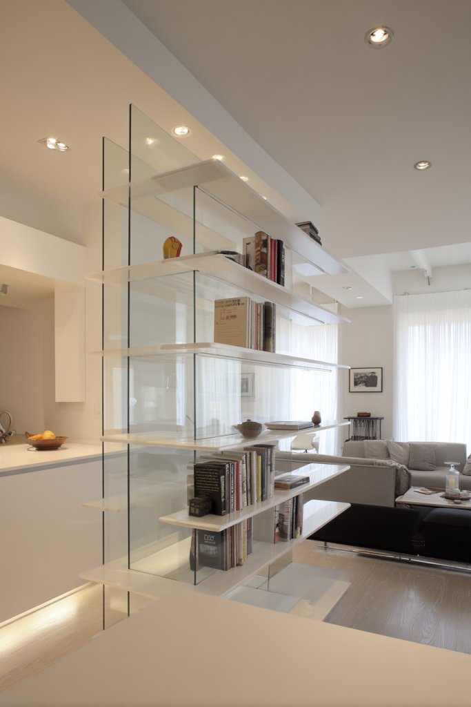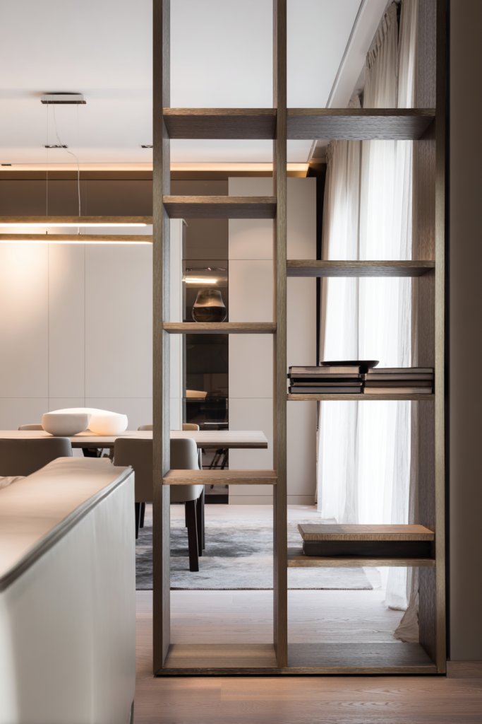 24. Stylish Area Dividers Using Bookshelves or Curtain Tracks