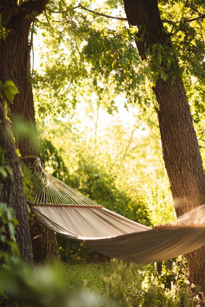 This simple setup can become your favorite outdoor escape, boosting your mental well-being and encouraging regular outdoor time. Once established, it’s easy to expand with additional decor or seating. Your friends will be jealous of your tranquil retreat—so go ahead, sway away and relax in style.