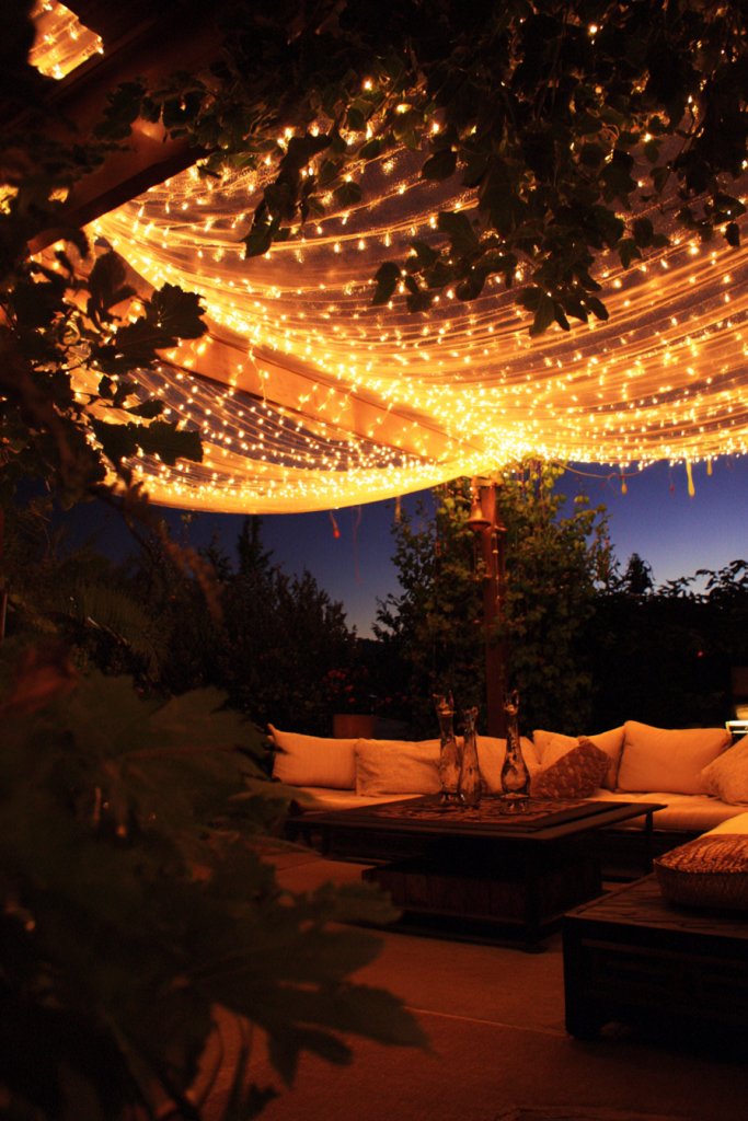 3. String Light Canopy Over Lounge Area