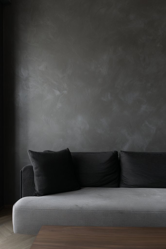 Imagine walls finished with matte paint combined with textured panels or subtle wall stencils. Light plays differently across these surfaces, highlighting their depth and creating a sophisticated backdrop. Soft shadows and gentle variations in finish add richness to the space. The overall effect is an understated but impactful elegance that complements modern furnishings.