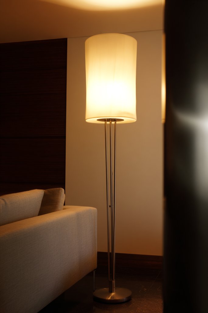 Picture a tall, slender lamp with a minimalist metal shade standing beside a cozy armchair. Its height draws the eye upward, emphasizing the room’s verticality. The sleek, matte finish complements modern decor, while soft light creates a warm glow that sets the mood. The lamp’s design balances form and function, acting as both lighting and art.