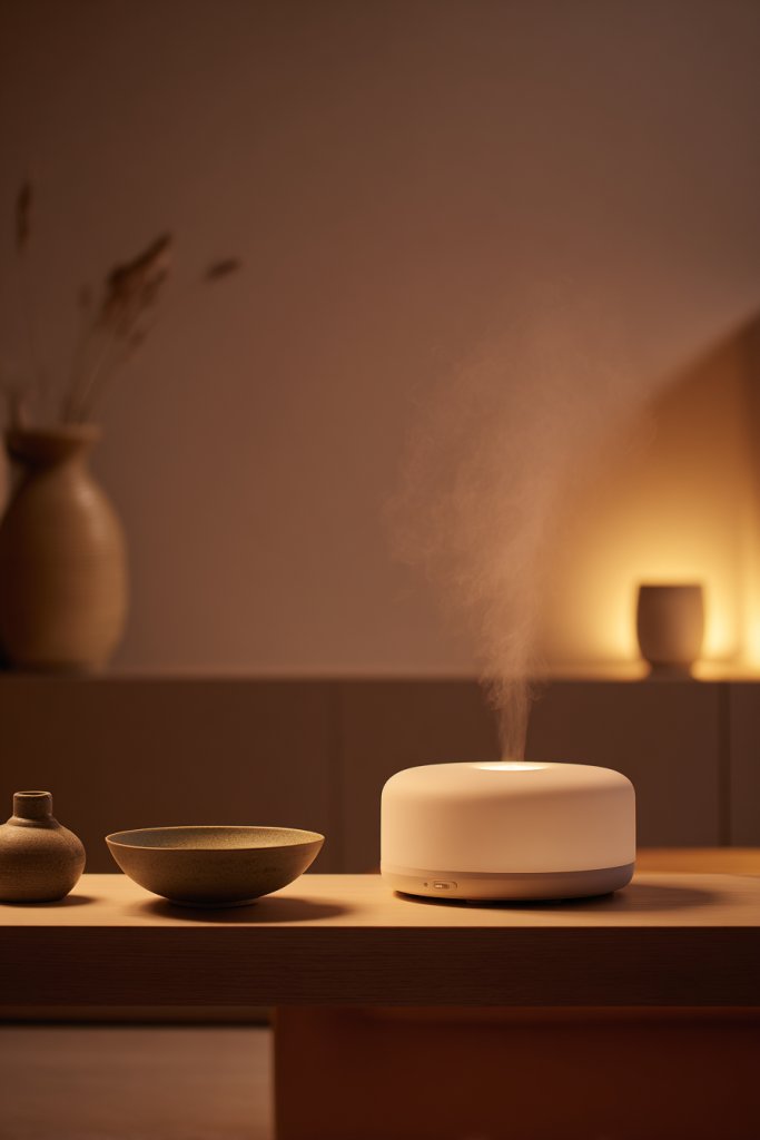 Create your signature scent by blending essential oils—think calming chamomile with a hint of vanilla. Add decorative touches like a small tray or a bowl of dried herbs nearby. Switch scents seasonally to match your mood or the weather—warm spices in winter, fresh citrus in summer. Personalize with your favorite essential oils and experiment with different diffuser styles for a cohesive look.