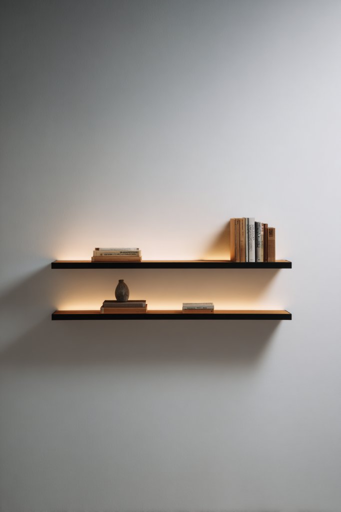 Visualize a set of floating shelves in warm wood or matte black, arranged asymmetrically. They hold neatly stacked books, small decorative objects, and textured baskets. The open design creates visual interest and makes your room feel more spacious. When styled thoughtfully, shelves add personality and warmth—think of them as a curated mini-gallery on your wall.