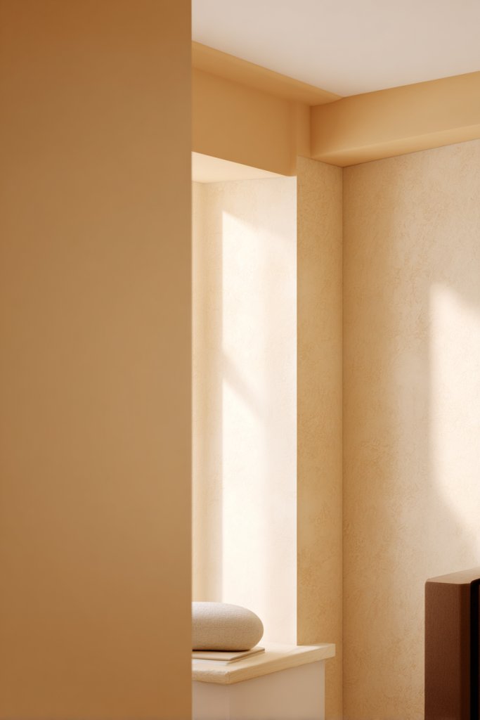 Imagine walls painted in soft beige or warm taupe, absorbing light and creating a gentle backdrop. Textured wall panels in natural materials like wood or woven fibers can add depth without overwhelming the senses. The warm tones naturally complement textiles, furniture, and decor, making everything feel harmonious. Subtle wall treatments soften sharp corners and give the room a layered, plush feel.