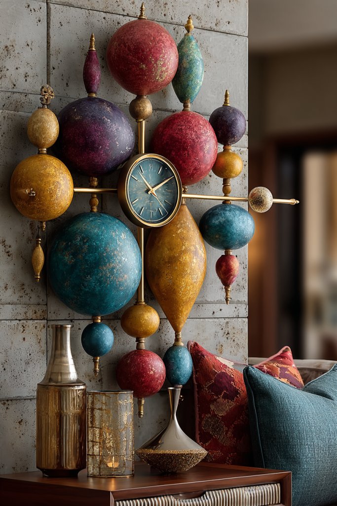 Imagine a large clock with a sunburst design, or a clock shaped like a vintage record. Or a sculptural piece that looks more like art than a timekeeper. These clocks come in bold colors, metallic finishes, or abstract forms, making them focal points on your walls. They add movement and a sense of whimsy, transforming an ordinary wall into a playful gallery of time and art.