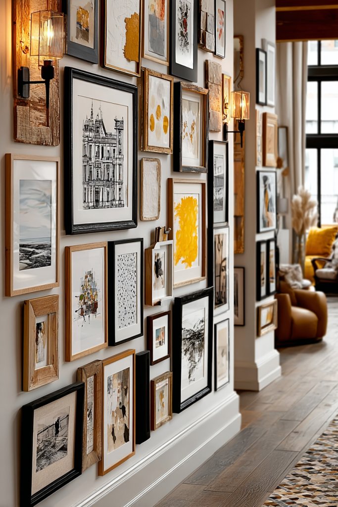 4. Hang a Gallery Wall with a Mix of Frames and Art Styles