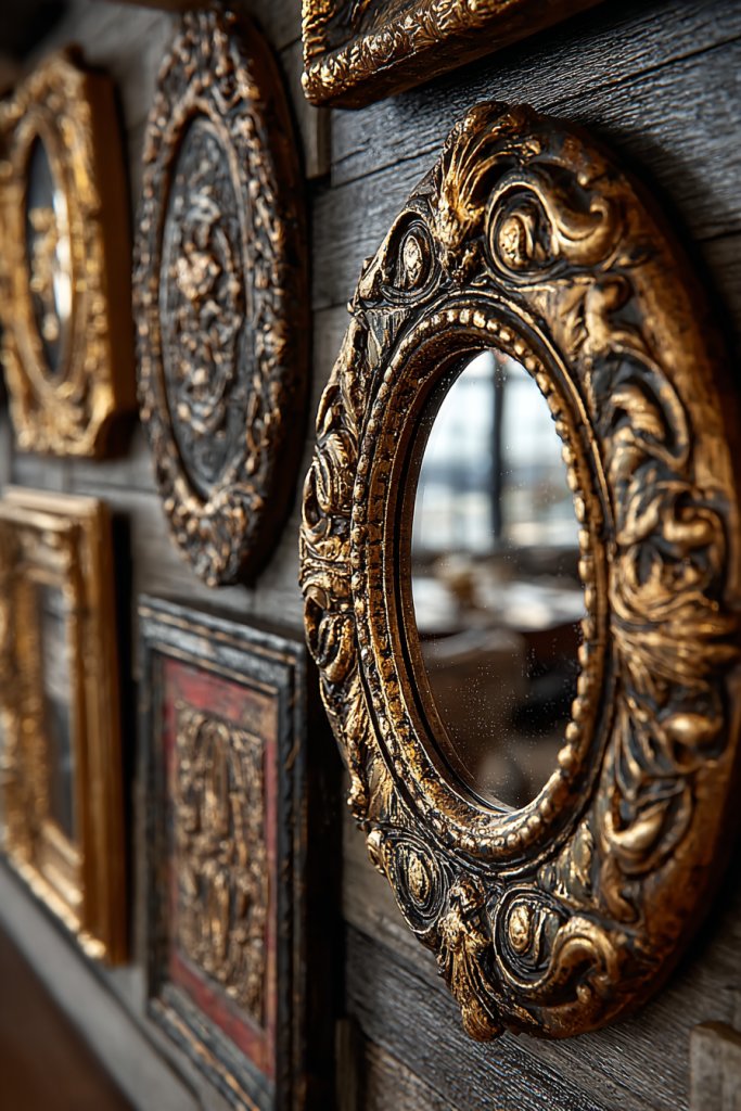 Mix different frame styles—ornate, minimalist, distressed—for an eclectic look. Use mirrors of various shapes—round, oval, geometric—to add variety. Consider placement—over a fireplace, in a hallway, or as part of a gallery wall. For small rooms, a large mirror can visually double the space. Layer smaller mirrors with framed art or decorative objects for a curated effect.