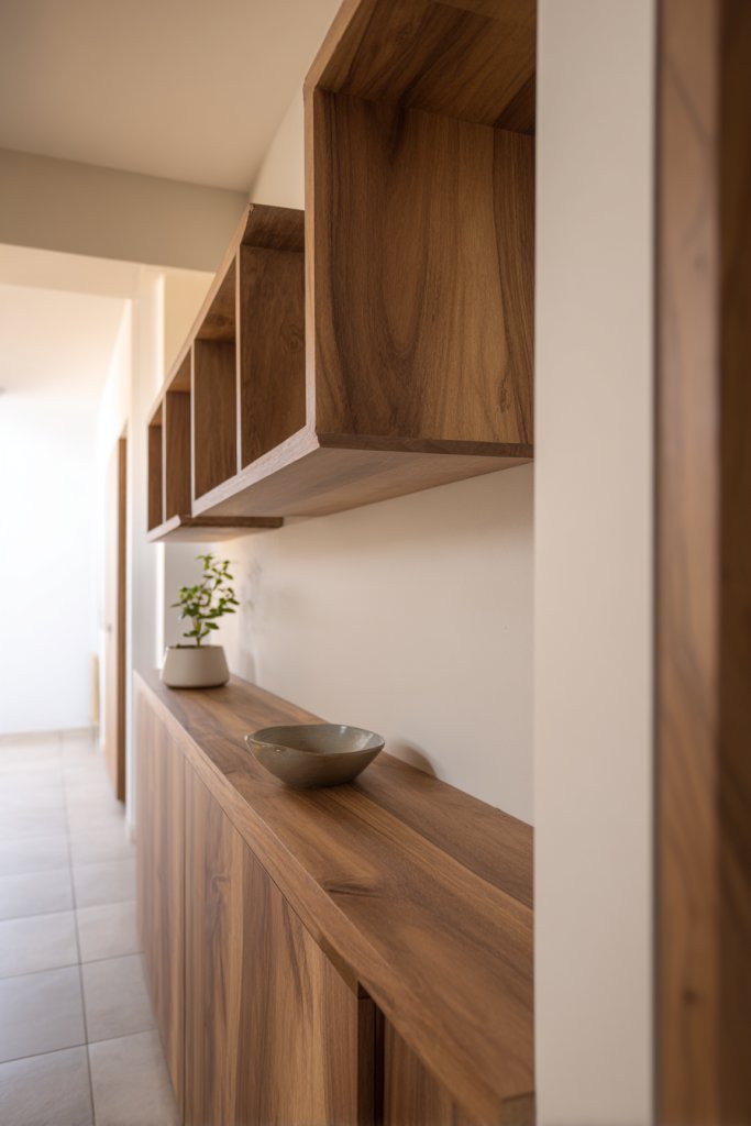 Limited space in your hallway doesn’t mean you have to sacrifice style or storage. Narrow sideboards with open shelves offer a sleek solution for organizing essentials while maintaining a light, open feel. They’re versatile enough to hold everyday items or decorative objects, making your entry both functional and attractive. Who says small spaces can’t be stylish?