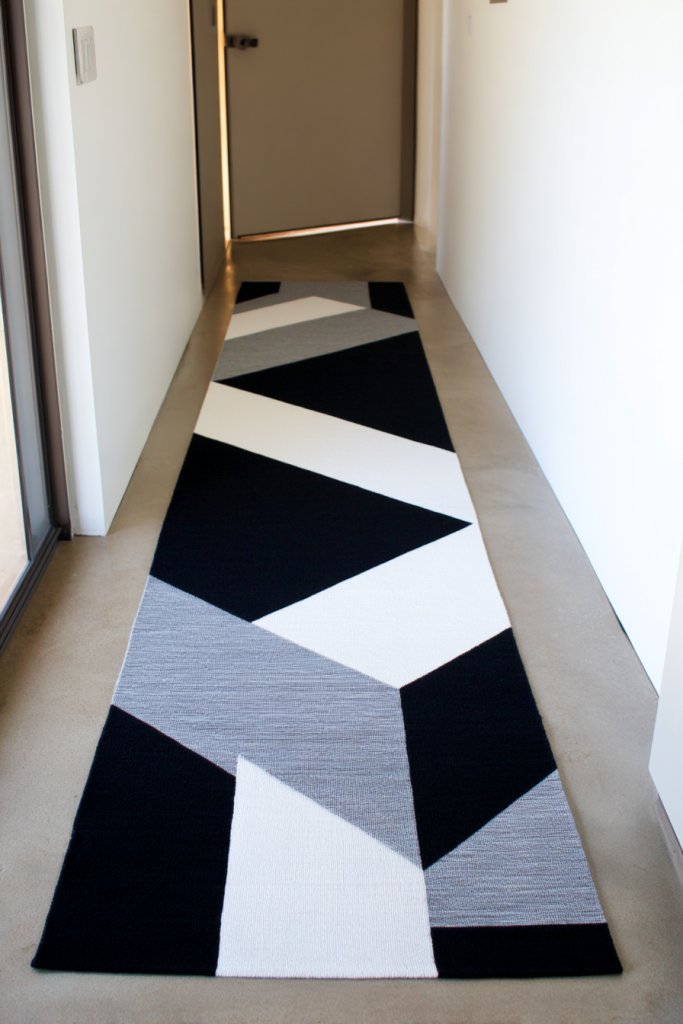 Picture a bold rug with triangles, chevrons, or hexagons in contrasting colors—perhaps black and white or vibrant shades. It covers the floor, creating a focal point that draws the eye immediately. The patterns add rhythm and movement, transforming a plain space into a dynamic design feature. The textured weave or pile height adds tactile interest, inviting guests to step in with confidence. It’s like a runway for your hallway.