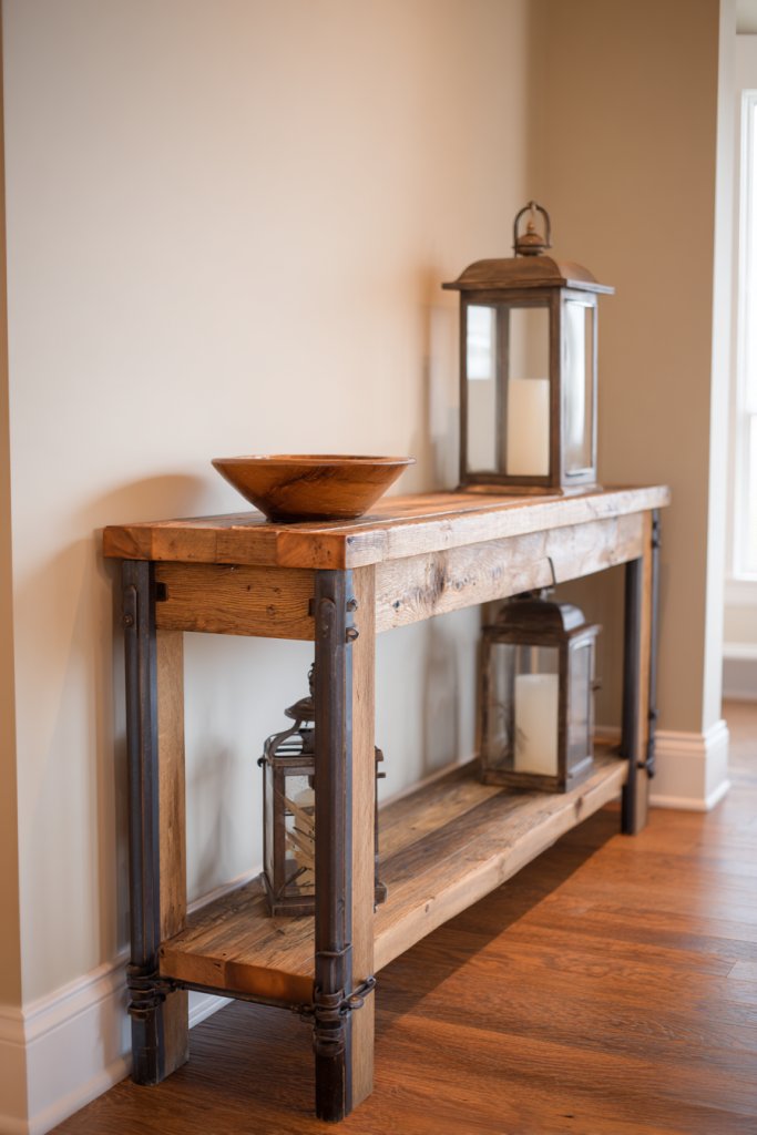 Picture a wooden console with metal accents, paired with a matching coat rack or shelving unit. The natural grain of the wood adds warmth, while metal details provide a sleek, contemporary edge. These materials develop a beautiful patina over time, adding character and a sense of history. The combination creates a balanced, inviting space that’s both functional and stylish. It’s like bringing nature inside.