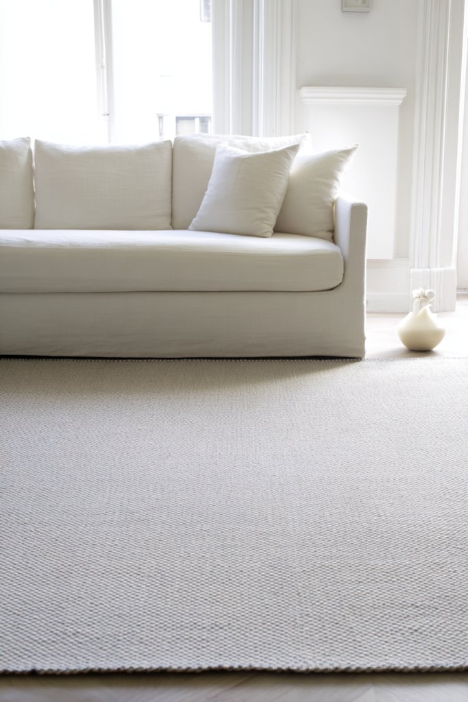Picture a jute or sisal rug with a woven texture laying beneath a low-profile sofa. The subtle pattern complements the neutral palette, adding tactile richness. The fibers’ natural look enhances the organic feel of the space, while the subdued tones keep the environment calm. The rug’s texture invites barefoot strolls and adds a cozy layer.
