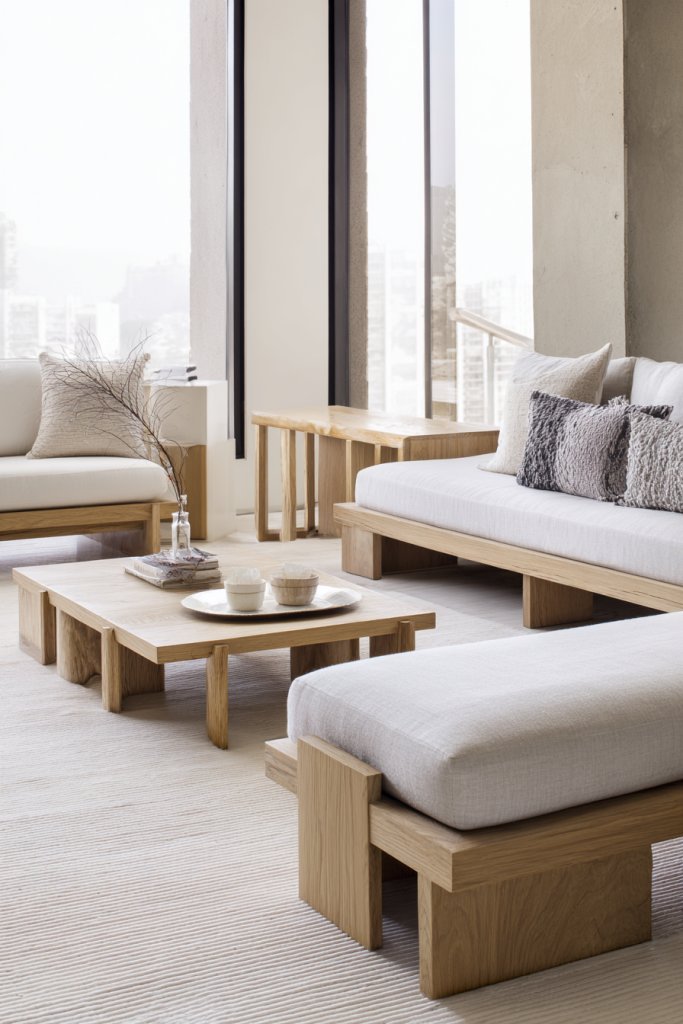 Imagine sleek, low-slung sofas with clean lines paired with slim coffee tables that hover just above the floor. The furniture’s understated design makes the room appear larger, while the lack of bulky shapes keeps the eye moving freely. Light-colored upholstery and natural wood accents enhance the airy feel, making everything seem more expansive.