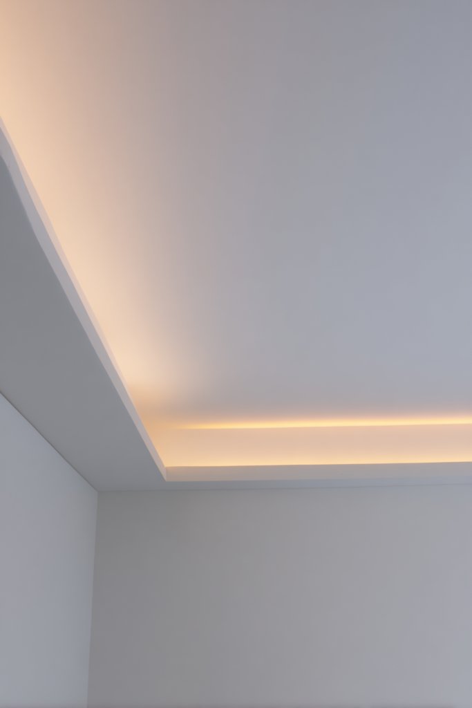 Imagine a ceiling that appears to float effortlessly with a soft, continuous glow emanating from hidden LED strips. The light casts gentle shadows along the edges, creating depth and dimension without any visible fixtures. The sleek, seamless finish makes the room feel larger and more open, like the light itself is part of the architecture. It’s a subtle yet powerful design element that elevates any modern interior.