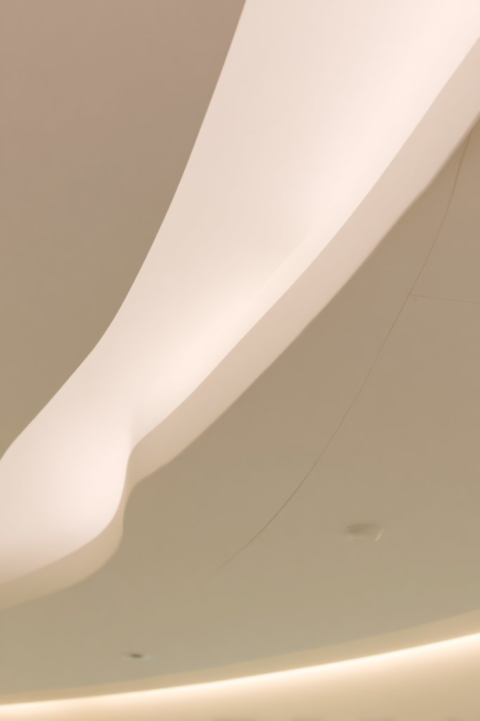 Imagine a sweeping, smooth curve that follows the shape of your room or an accent wall. LED strips hidden behind the curve cast a gentle backlight, emphasizing the fluid form. The soft glow highlights the gentle contours and adds a sense of depth, making your ceiling look like a piece of flowing art. It’s a calming yet stylish centerpiece.