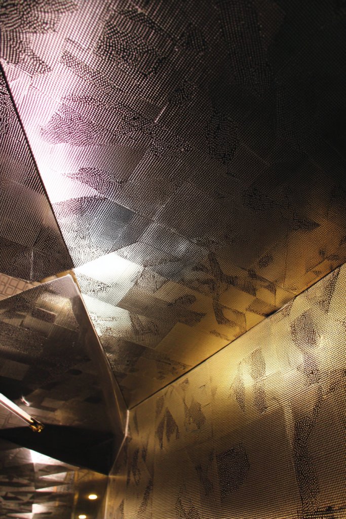 22. Metallic Ceiling Tiles with Geometric Patterns