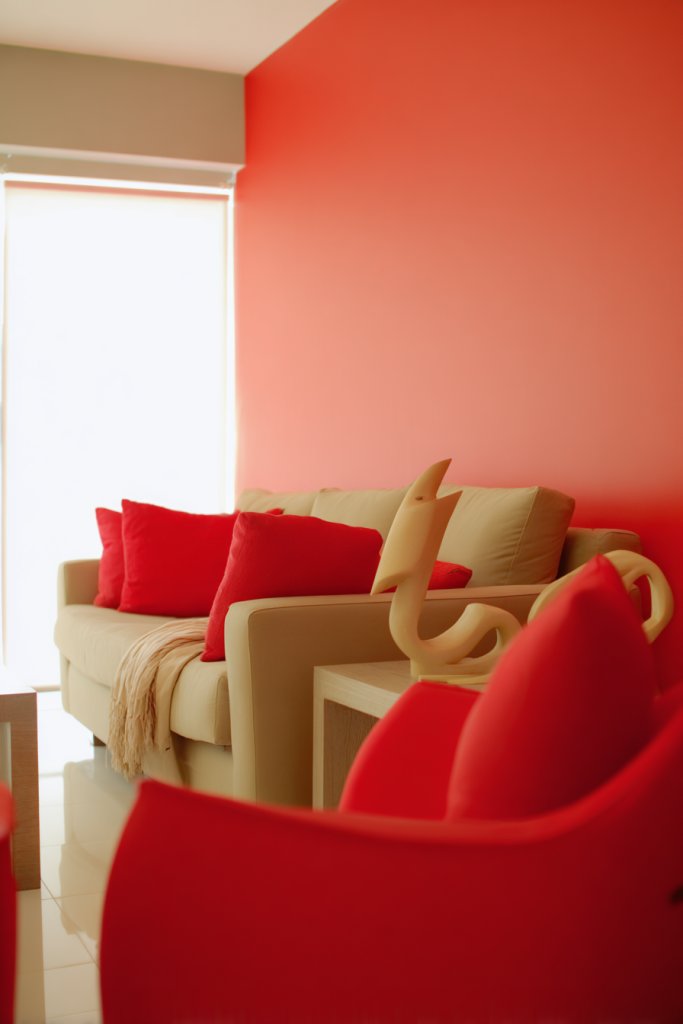 16. Bright Red and Neutral Beiges for a Dynamic, Energizing Space