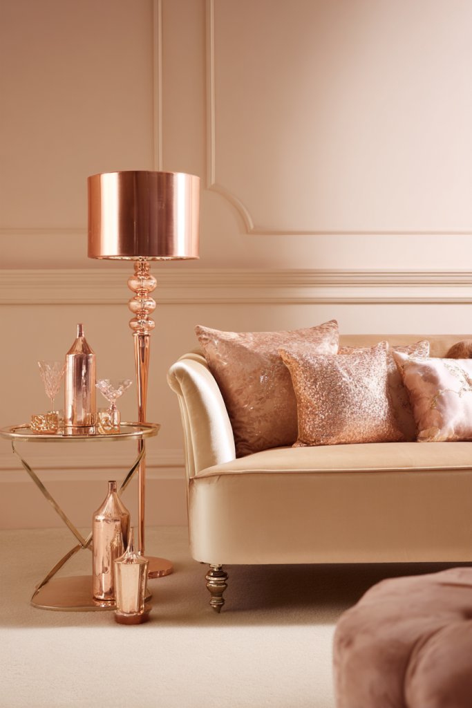 Dreaming of a chic, feminine living room that feels luxurious? Soft champagne paired with rose gold accents exudes glamour and sophistication. It’s perfect for creating a space that’s both elegant and inviting. If your decor feels dull or too plain, this palette adds a touch of sparkle.