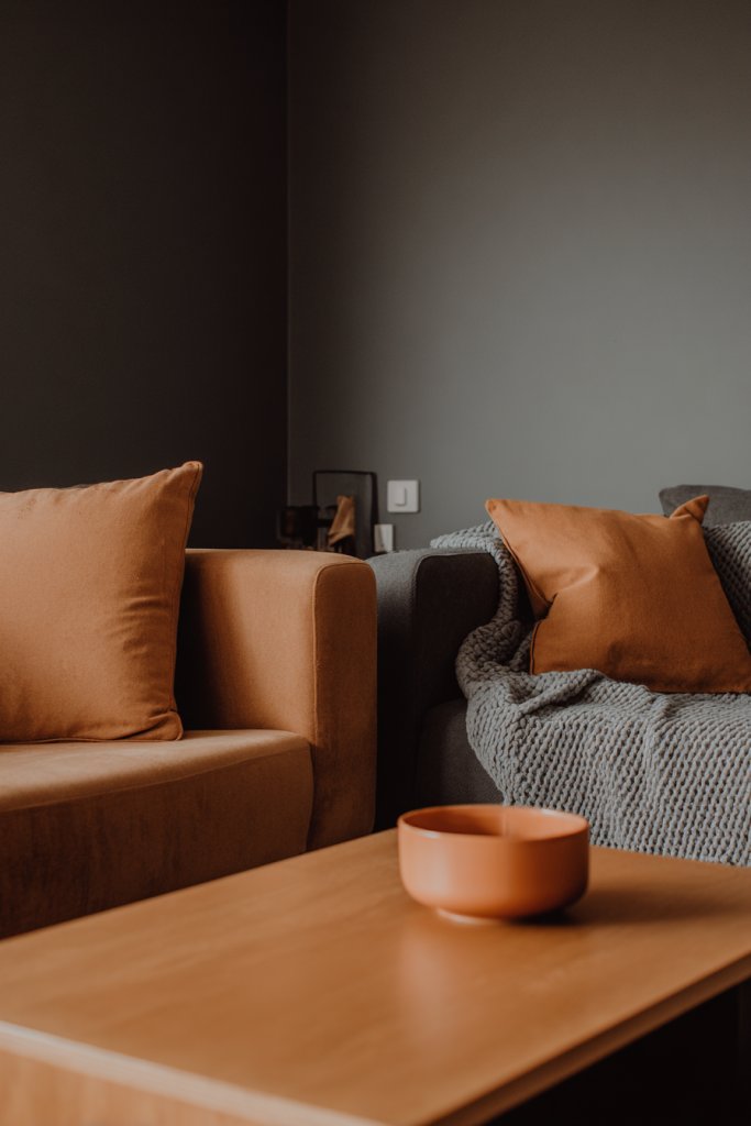 Combine different shades of gray and caramel, adding layers of texture—wool, velvet, or woven fabrics—to deepen the aesthetic. Use warm metallic accents like brass or copper for fixtures and decor. Keep furniture sleek and minimalist for a contemporary look, adding soft textiles for comfort. For small spaces, stick to lighter tones and fewer layers; larger rooms can handle more textures and layered decor.