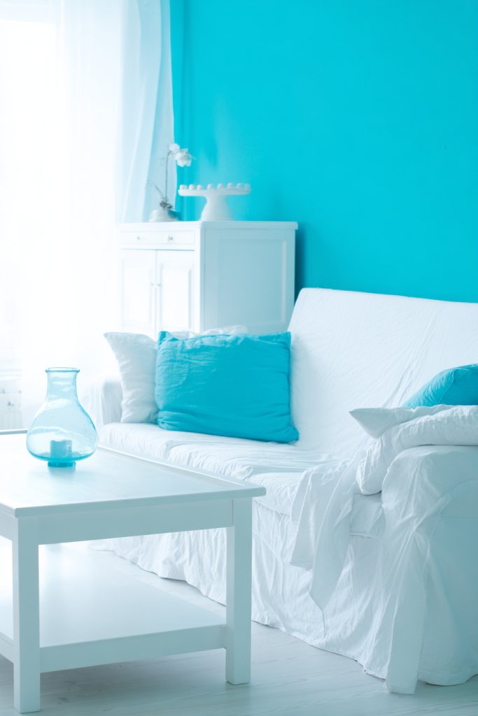 Yearning for a breezy, coastal feel that transports you to the ocean? Bright aqua combined with crisp white creates a fresh, invigorating space. It’s perfect for evoking seaside serenity and making your living room feel open and lively. If you crave a vacation vibe at home, this palette delivers.