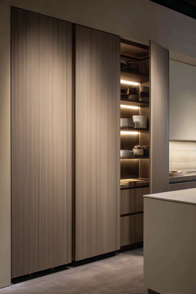 11. Incorporate Built-In Pantries with Fluted or Slatted Wood Doors
