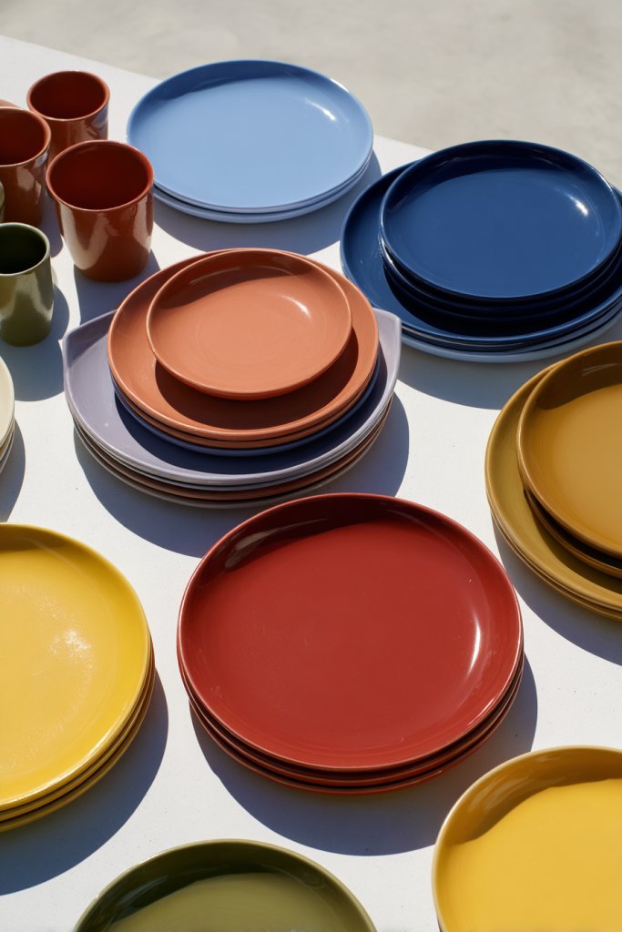 Overly ornate or busy dishware can clash with a clean, mid-century aesthetic. Simple, solid color plates and utensils in primary or earth tones provide a cohesive, understated look. They make your table setting feel intentional and stylish while complementing your overall decor. Plus, they’re versatile enough to mix and match.