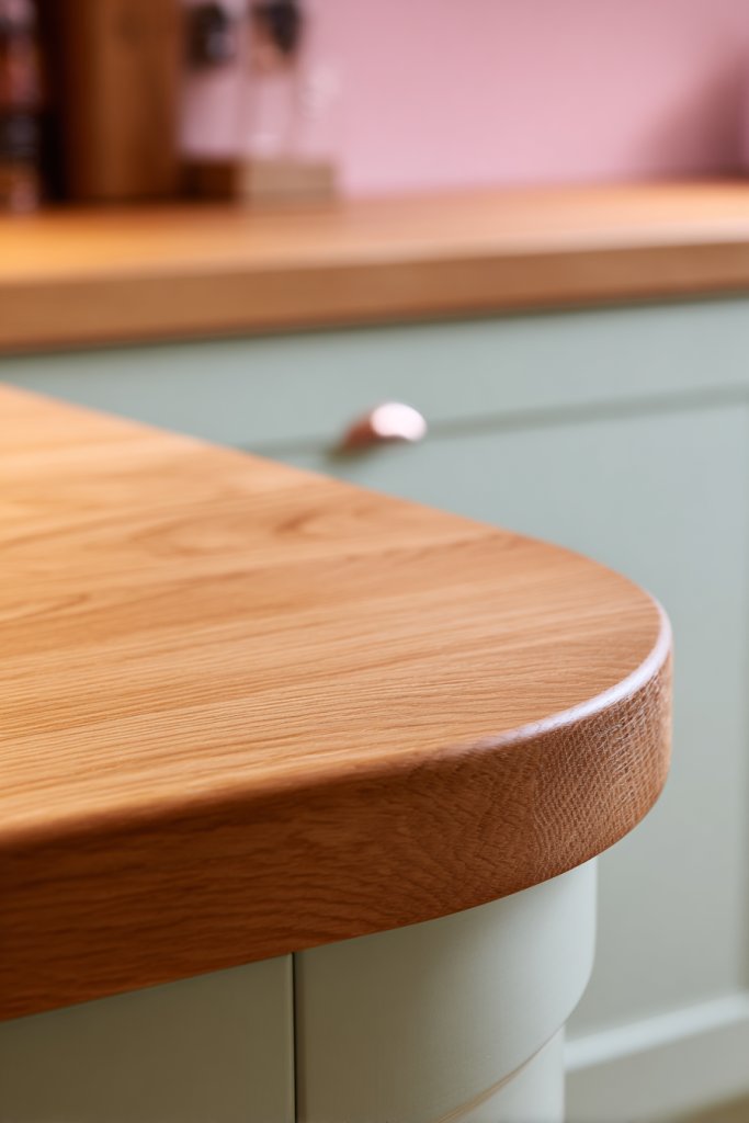 7. Add a Wooden or Laminated Worktop with Rounded Edges for a Soft, Retro Feel