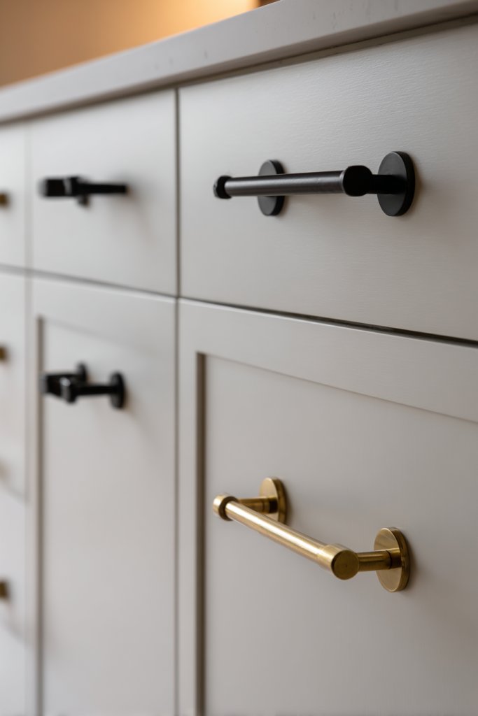 Mix and match finishes for an eclectic look—black with brass accents, or matte with shiny. Use different sizes for drawers and cabinets to create visual rhythm. For a more vintage feel, opt for rounded or ornate hardware, but keep it minimalist for a sleek vibe. Replace old handles during a facelift or when updating your decor.