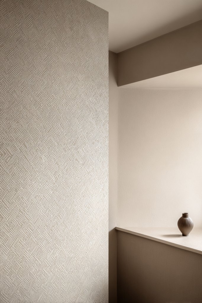Imagine soft beige or light gray walls, serving as a quiet canvas. A textured wallpaper with geometric patterns or subtle embossed designs in one accent wall brings depth. The tactile surface invites touch and adds a layer of sophistication. Paired with sleek cabinetry and warm lighting, it creates a cozy, inviting atmosphere.