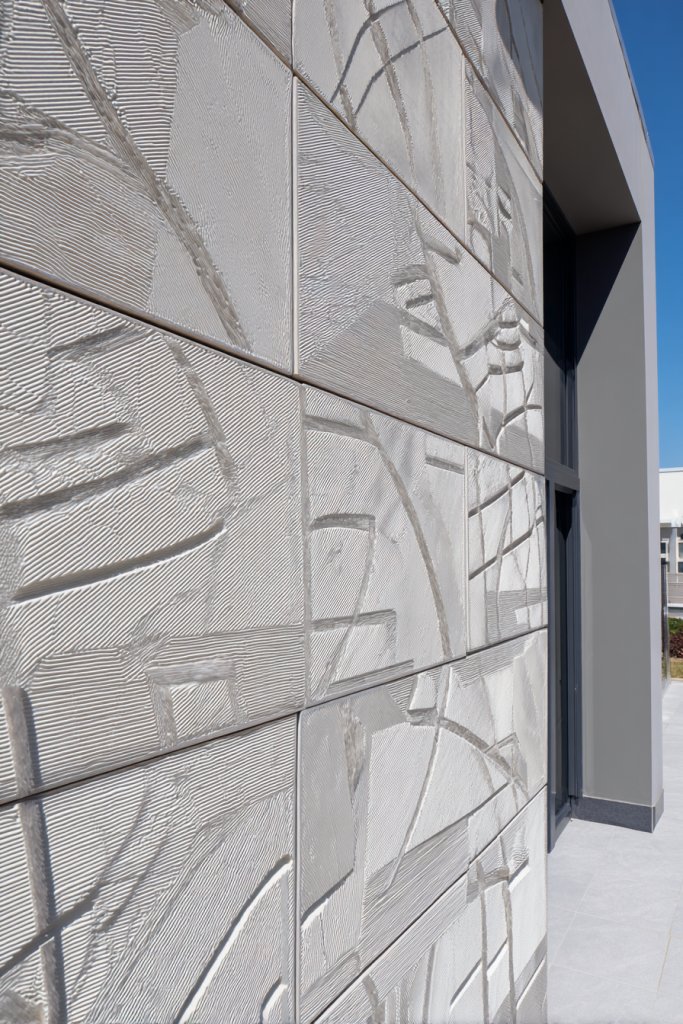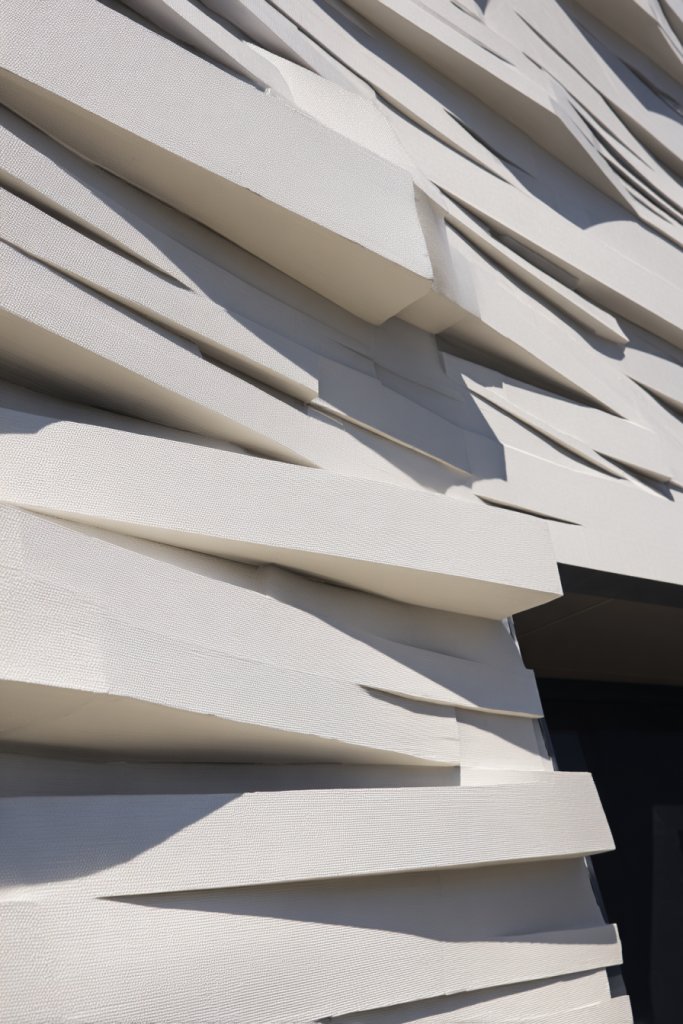 Imagine textured metal or fiber cement panels with abstract patterns, sculptural reliefs, or geometric motifs. They can be installed as standalone accents or integrated into entire wall sections. The play of light and shadow across these surfaces adds depth, making the facade dynamic and engaging. During the day, the textured surfaces reflect light differently, emphasizing their artistic quality.