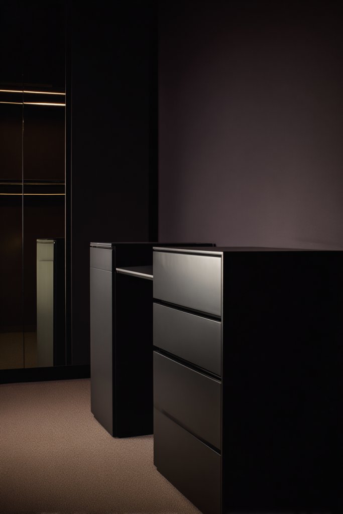 Select furniture made from durable materials with a matte finish—powder-coated metal, painted MDF, or veneered wood. For DIY enthusiasts, consider repainting or refinishing existing furniture in matte black or charcoal for a budget-friendly upgrade. Use sandpaper and primer before painting to ensure a smooth, long-lasting finish. Pair with minimalist hardware in matte black or brushed metal. Keep the finish clean by wiping with a soft cloth and avoiding harsh chemicals.
