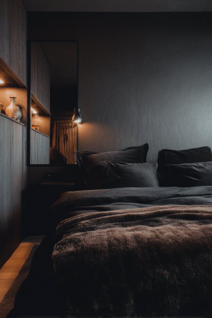 Textured pillows in dark hues are an easy way to add sophistication and comfort. They make your bed or sofa look professionally styled, even if you’re just experimenting. Small touches like these boost your confidence in mixing textures and creating layered aesthetics. Ready to give your space that plush, moody upgrade?