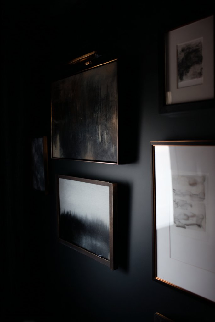 7. Moody Wall Art with Dark Frames