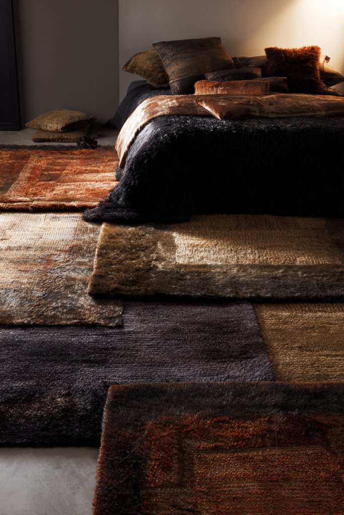 8. Layered Rugs in Warm, Dark Shades