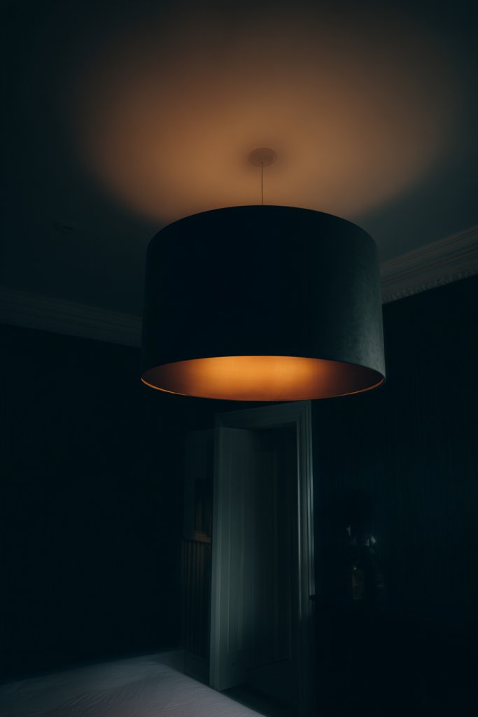 Picture a bold pendant chandelier hanging above your bed, casting a gentle, warm light that bathes the room in a soft glow. The fixture itself could be made of matte black metal, frosted glass, or sculptural ceramic—whatever matches your style. The light’s warm hue creates a cozy ambiance, perfect for winding down or setting a romantic mood. It becomes a statement piece that draws the eye and anchors the room’s design.