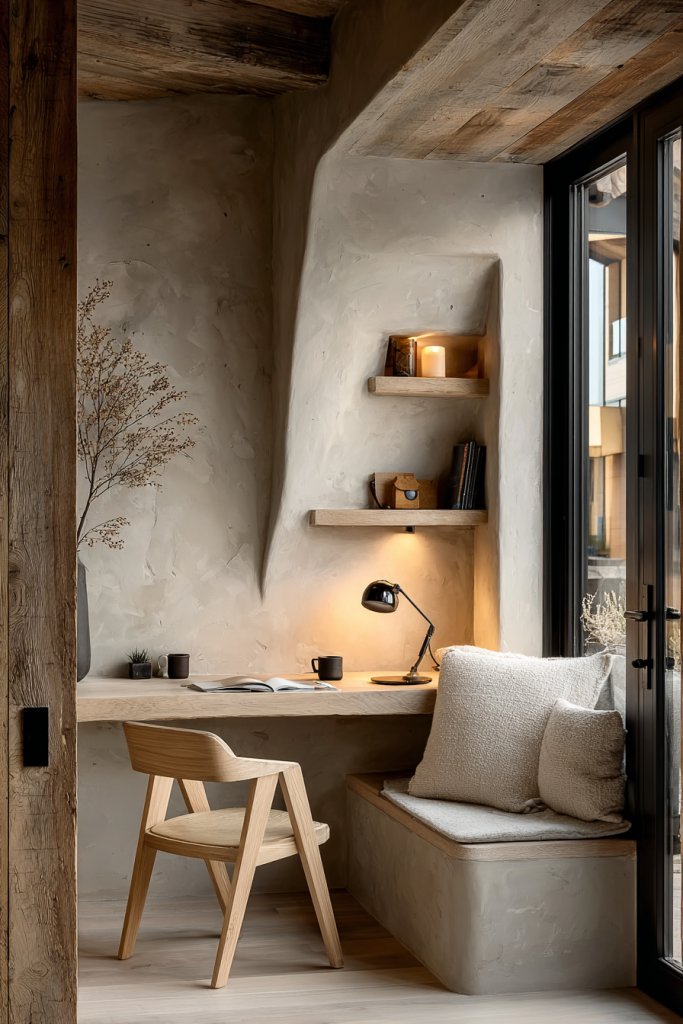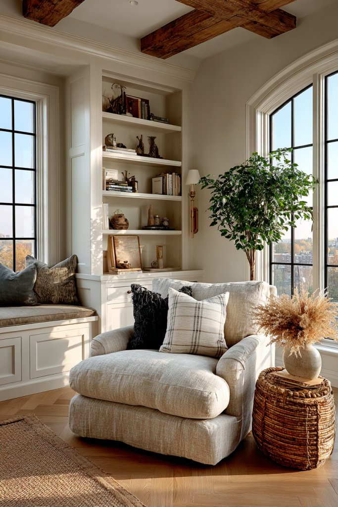 Visualize a small alcove with a plush armchair or cushioned window seat, flanked by custom-built shelves filled with your favorite reads. Soft lighting, like a wall-mounted sconce or a small table lamp, creates a warm glow. Textured cushions and throws add comfort, while the surrounding shelves provide a gallery of books and decorative objects. It’s a charming hideaway that beckons you to stay awhile.