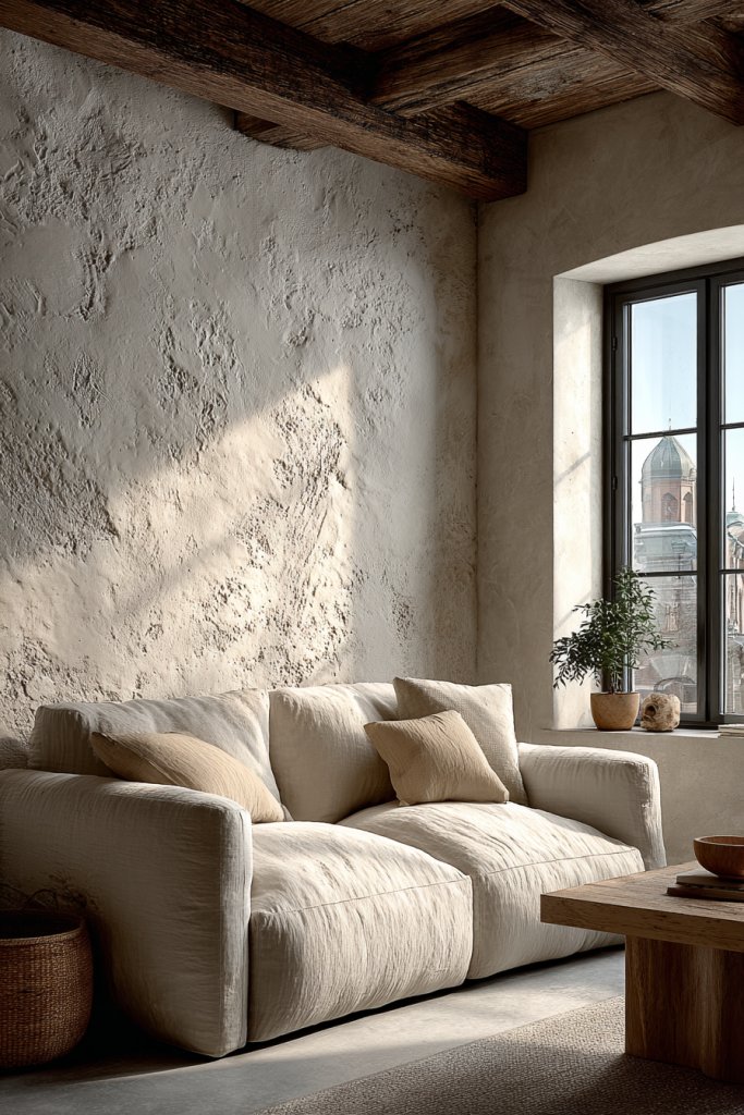 Picture a feature wall with textured stucco or plaster finish, catching light and shadow as you move through the room. Subtle patterns like vertical lines, geometric shapes, or embossed motifs add sophistication. The textures create a layered effect, making surfaces appear richer and more inviting. Paired with minimalist furniture, these walls serve as a focal point that draws the eye.