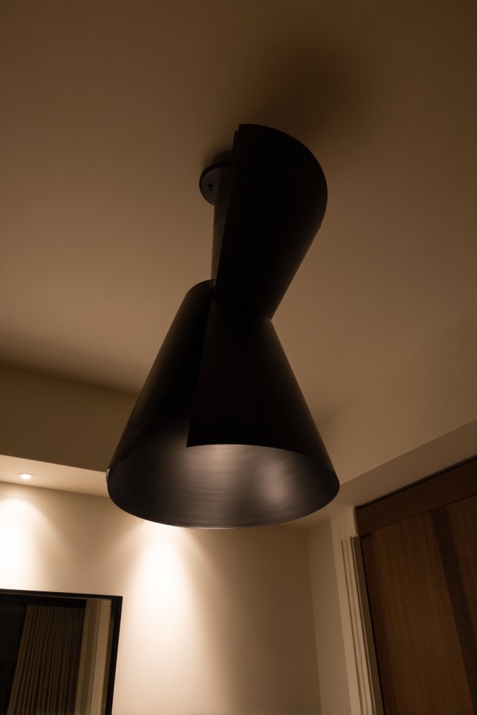 Picture a bold pendant or chandelier hanging in the center, featuring unique shapes or intricate details. The fixture’s design contrasts with minimal walls, adding texture and depth. When lit, it casts beautiful patterns and a warm glow that enhances the room’s ambiance. It turns the ceiling into a feature, making the space feel taller and more luxurious.