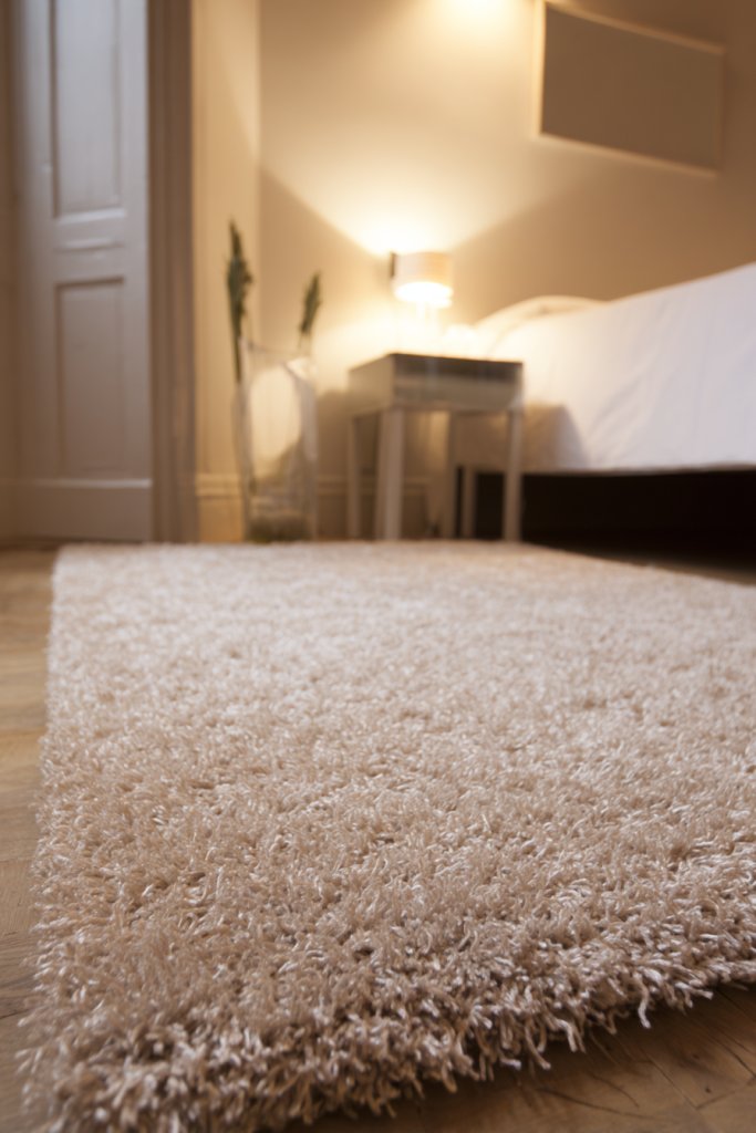 Coordinate the rug with your bedding and decor palette for a cohesive look. Add decorative cushions or throws that pick up on the rug’s colors or textures. For added personality, choose a vintage or artisanal piece with unique patterns or fringed edges. Layering a smaller rug on top of a larger neutral one can also create a personalized, layered effect.