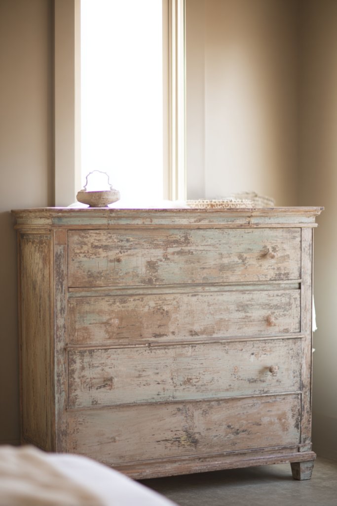 Start by sourcing an authentic vintage dresser or refurbishing an existing one. Sand down rough areas lightly and apply a distressed paint technique—think crackling or peeling effects. Use wax or sealant to protect your finish while maintaining the aged look. Hardware can be replaced or left to rust naturally for authenticity. Position it where it becomes the focal point, perhaps under a vintage mirror or a textured wall.