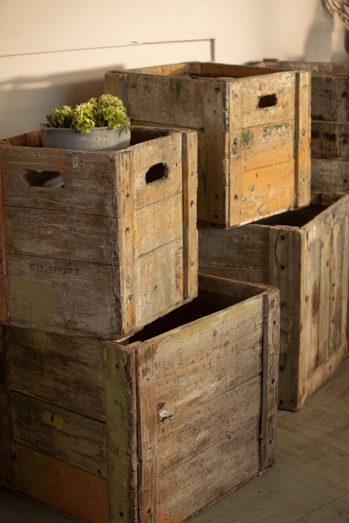 9. Old Wooden Crates Reimagined as Storage Bins or Plant Stands