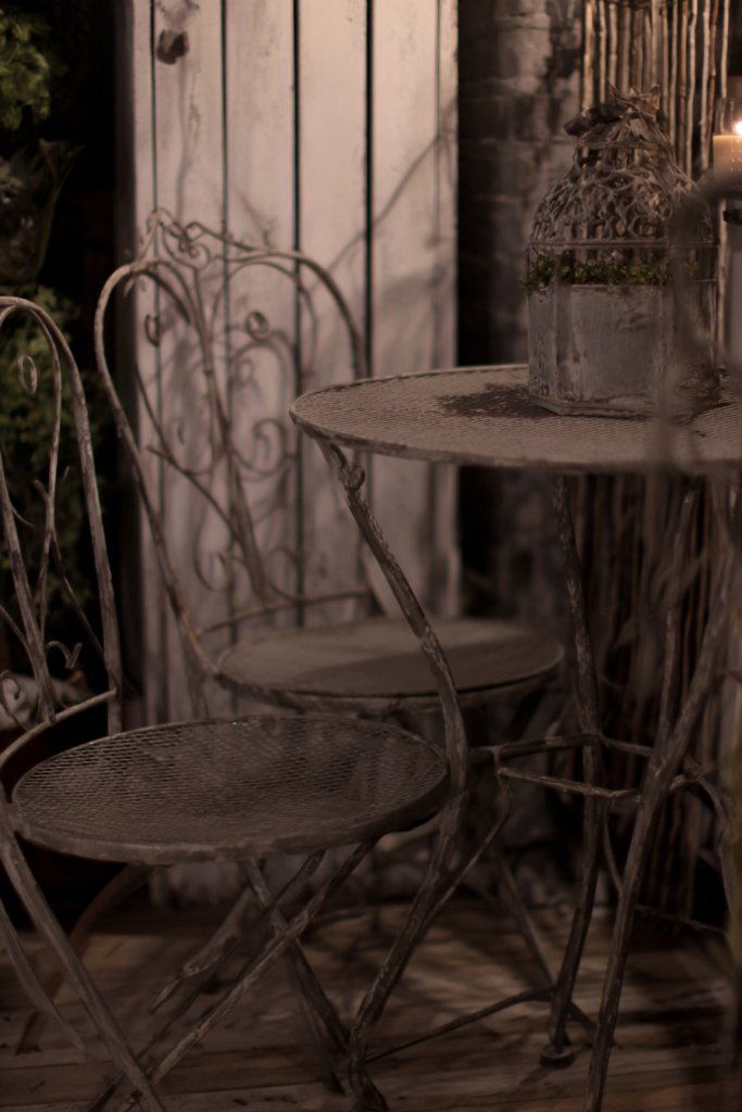 Select a vintage or reproduction metal bistro set with weather-resistant finishes. Clean and repaint if necessary, using rust-proof paint for outdoor use. Arrange in a shaded area, and add cushions for extra comfort. Decorate with string lights or vintage lanterns for ambiance. Regularly check for rust or corrosion and touch up paint.