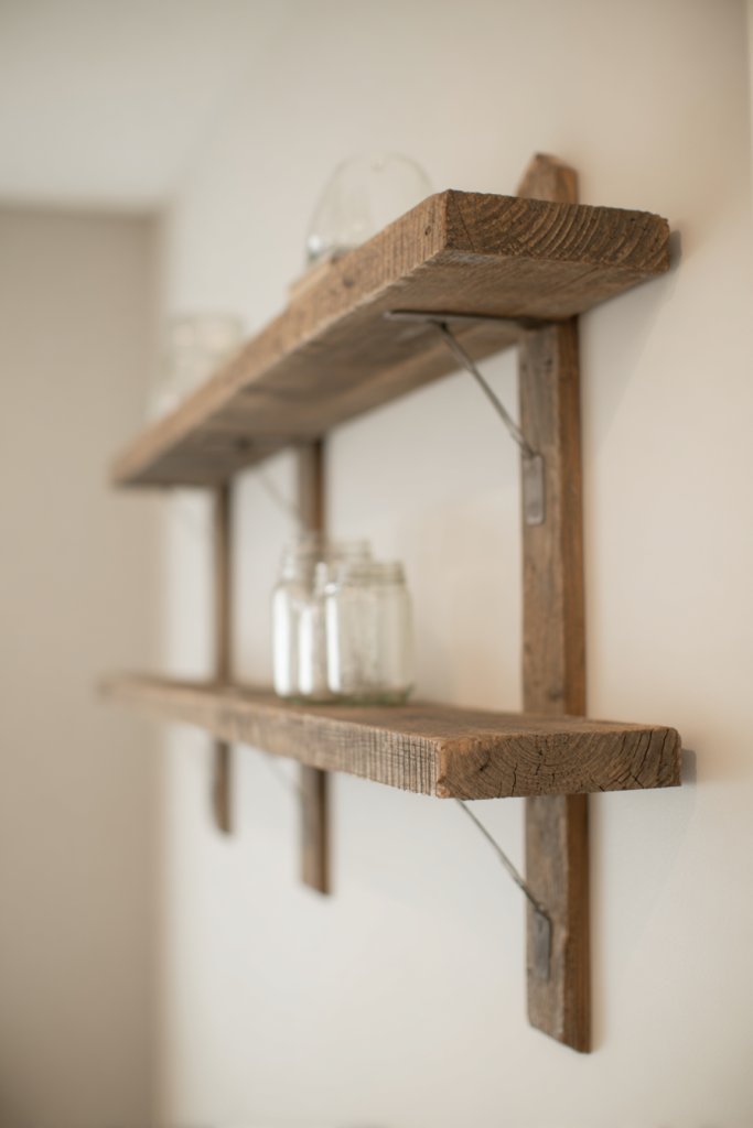15. Reclaimed Wood Wall-mounted Shelves with Vintage Finishes