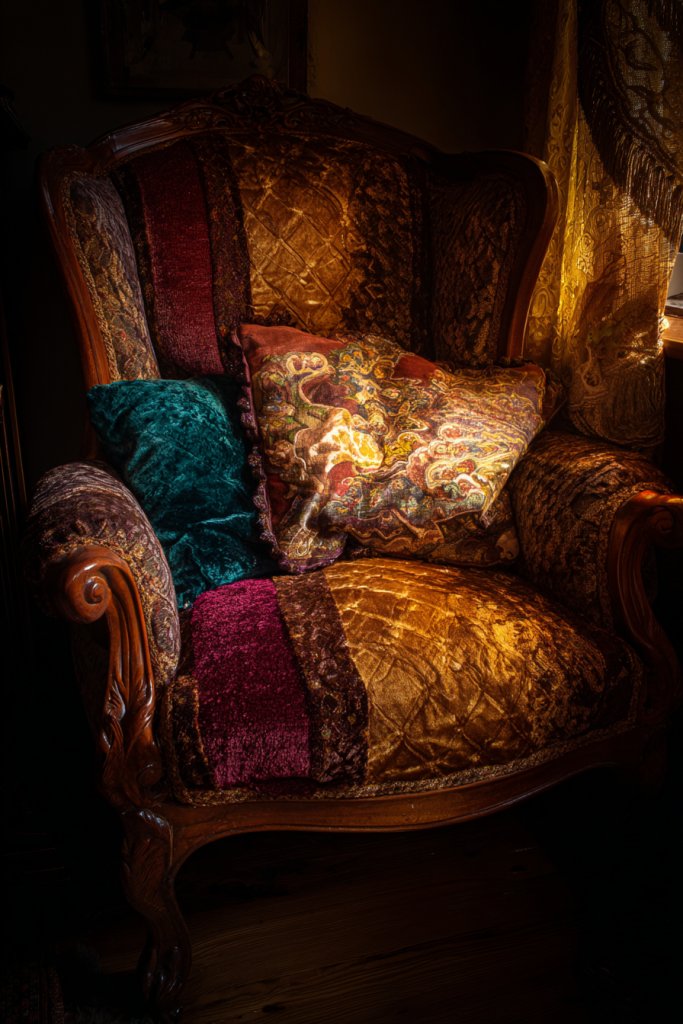 Select a sturdy vintage or reproduction wingback chair with quality upholstery. Reupholster if needed with velvet, tapestry, or chenille—choose fabrics that wear well and feel plush. Position near a fireplace or window for maximum coziness. Maintain with gentle cleaning and occasional fabric refreshers. Reinforce legs and joints for safety.