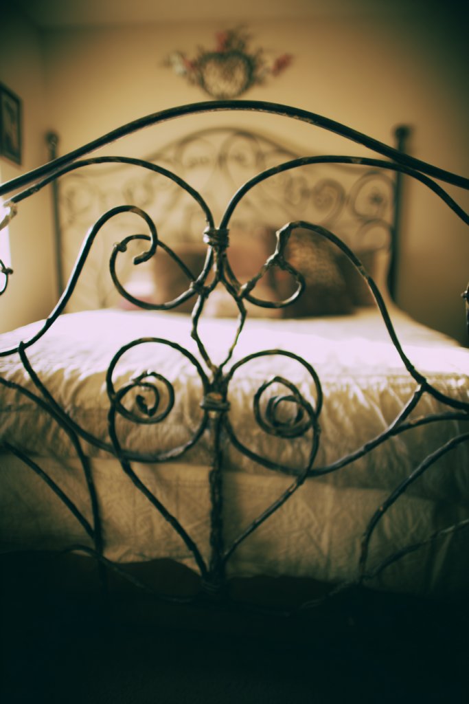 5. Antique Iron Bed Frame with Intricate Headboard for a Romantic Bedroom