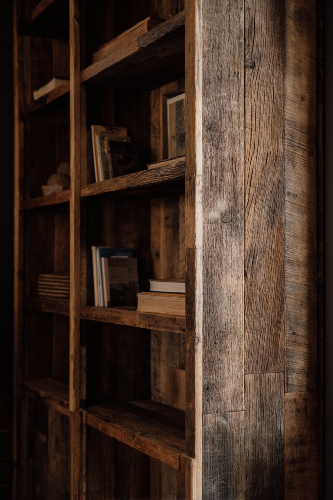 7. Reclaimed Wood Bookshelf with a Rustic, Timeworn Look