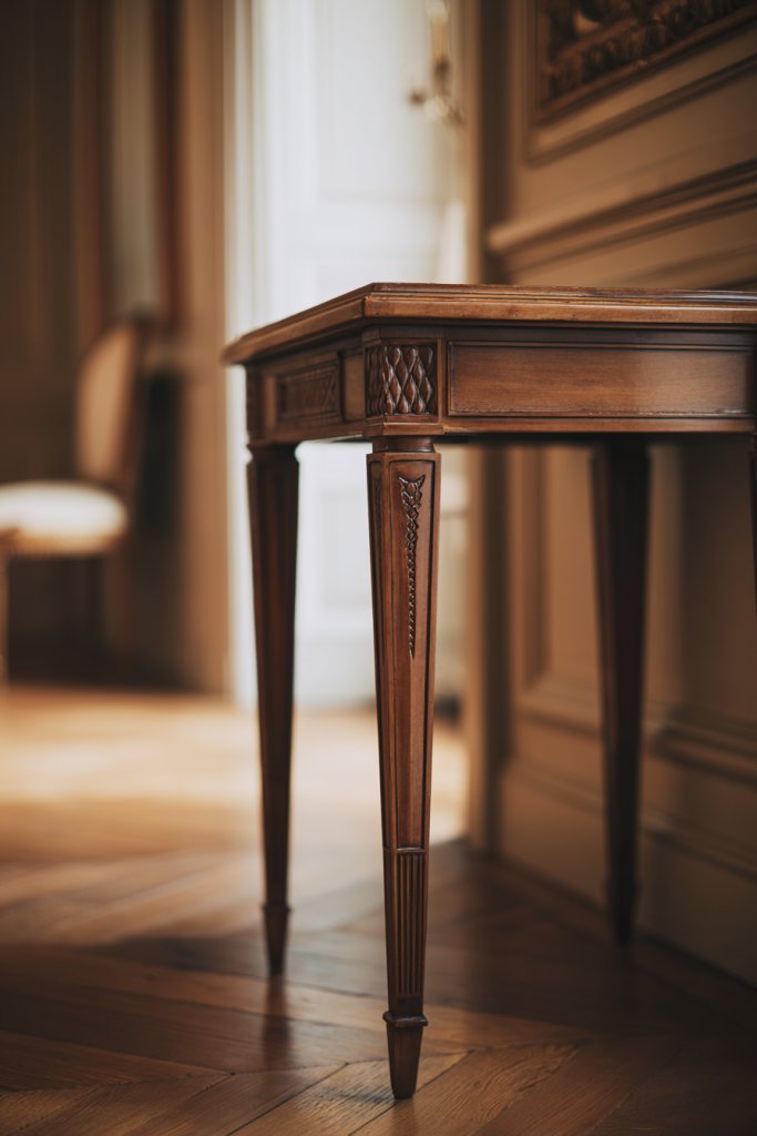 Visualize a beautifully carved wooden table with intricately turned legs, reminiscent of antique furniture. The surface might feature delicate inlays or subtle carvings, adding to its ornate appeal. Its rich, warm finish enhances the detailed craftsmanship, creating a focal point in any room. Picture placing it beside a velvet armchair or vintage sofa, where its elegance elevates the entire decor. The craftsmanship invites admiration and admiration turns into a conversation starter.