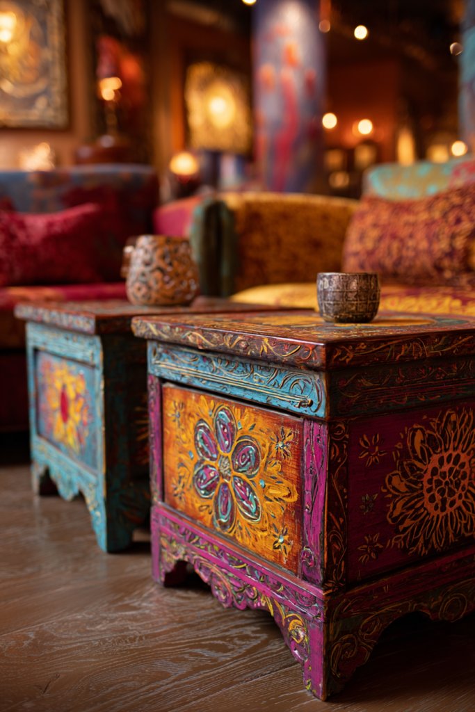 Craving a piece of furniture that shows off your personality? A hand-painted wooden side table with artistic detailing transforms a simple surface into a work of art. It’s perfect for adding color, pattern, or a personal story to your decor. Plus, it makes a bold statement and showcases your creative side. Who says furniture can’t be expressive?